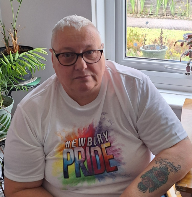 Kathy joined the committee a few months ago and is a retired senior residential care worker working with children in care she has a strong sense of fairness and people's rights hence why she is happy to be part of Newbury Pride.
